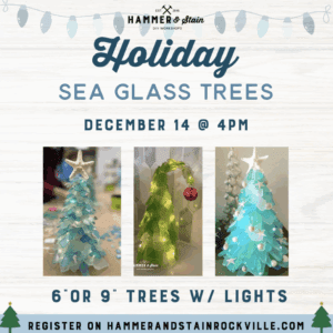 Join us on December 14 at 4pm at Hammer & Stain Rockville to make your very own tumbled sea glass holiday tree. We will have a variety of glass colors and embellishments […]